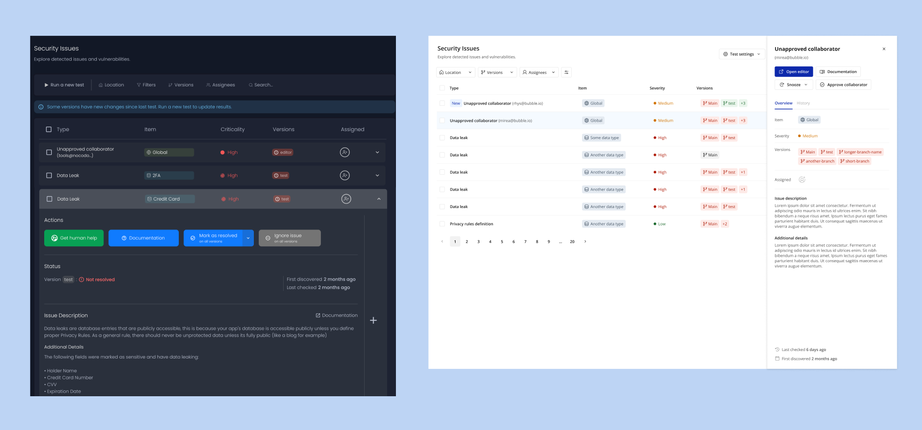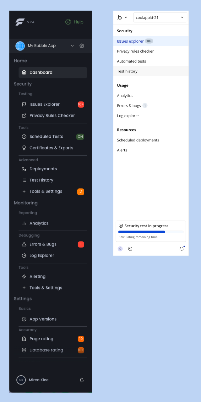 Bubble acquired a security and monitoring tool. This tool needed to be reskinned to fit in with pre-existing tools and design components as well as integrating better with existing products.